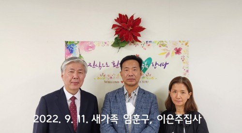 2022년 9월 11일 새가족 임훈구, 이은주집사 작성자신목교회 등록일 22-09-12 조회503회 이름신목교회 본문 2022. 9. 11일 새가족 임훈구, 이은주집사 스스로사랑하고 축복합니다. 2023년 새가족 4월 2일, 23일 새가족 봉학근성도, 이유정성도 2022. 5. 15일 새가족 (이근식집사, 경은순권사) 목록
